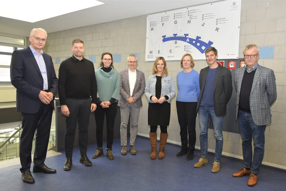 Foto: Vertreterinnen und Vertreter der vier kooperierenden Hochschulen beim zweiten BUGA-Netzwerktreffen von links: Prof. Dr. Karl Stoffel, Prof. Peter Thomé, Dipl.-Ing. Julia Trapp, Prof. Dr. Heiko Weckmüller, Dr. Miriam Voigt, Dr. Friederike Schulz, Prof. Dr. Henning Pätzold, Dipl.-Ing. Roger Baumeister (Foto: Hochschule Koblenz/Gandner)